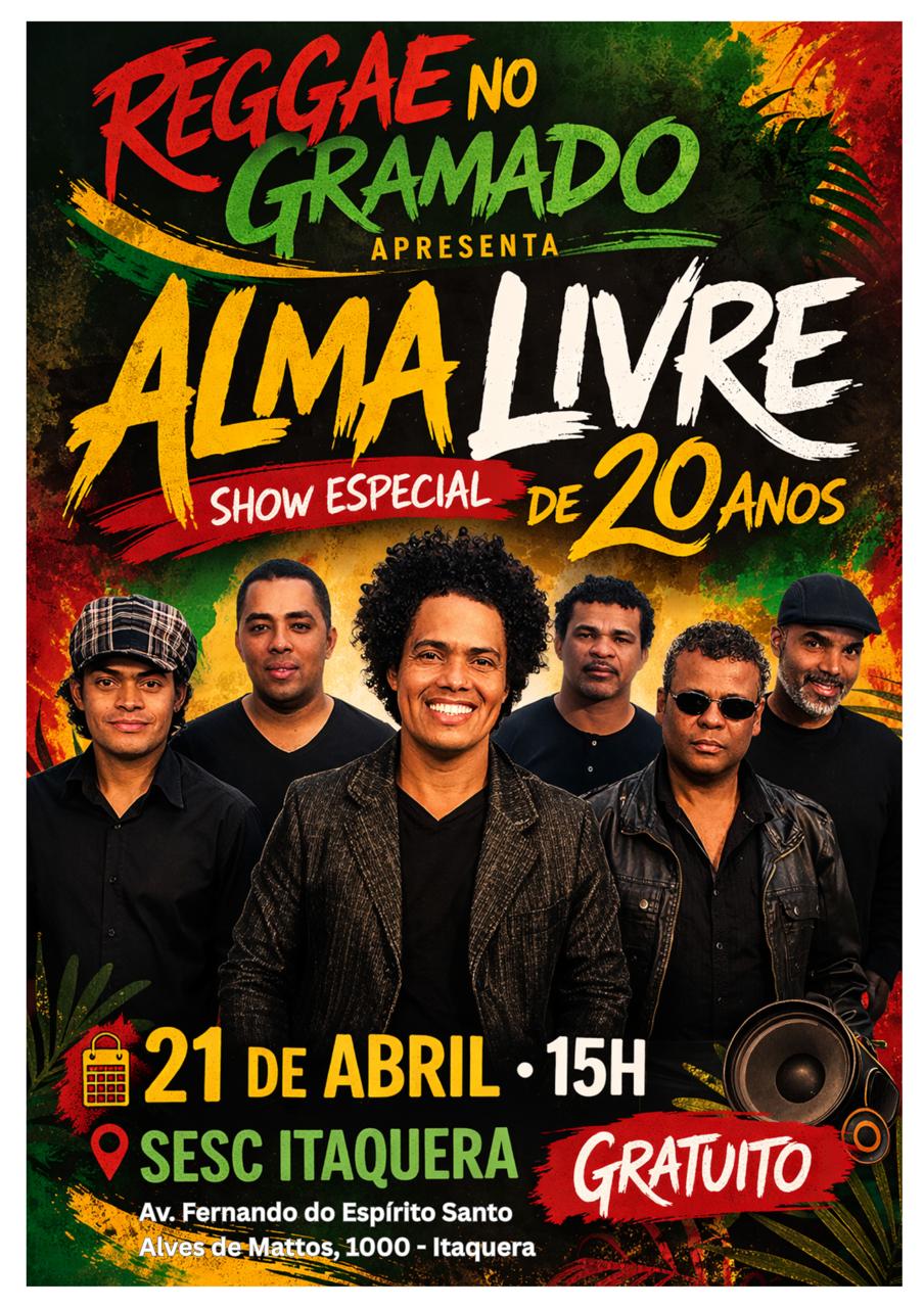 BANDA ALMA LIVRE COMEMORA 20 ANOS COM SHOW ESPECIAL NO SESC ITAQUERA
